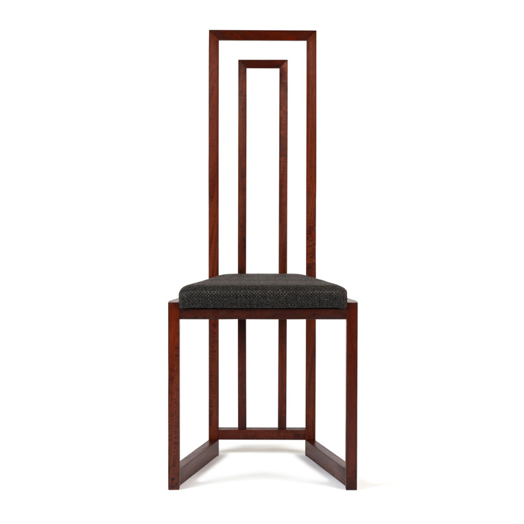 Inspired by furniture by Frank Lloyd Wright, it's tall back creates a real statement around the table.